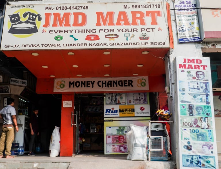 Welcome to JMD MART, your trusted destination in Ghaziabad for a wide range of essential services. We specialize in money exchange services, including the purchase and sale of foreign currency, ensuring secure and hassle-free transactions. As a tour and travel expert, we assist with visa services and customised travel solutions for both domestic and international journeys. At JMD MART, we bring convenience, reliability and care—all under one roof.